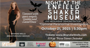 Join us for an unforgettable evening at Enfield Shaker Museum on October 21s! As we approach the thinning of the veil, this event promises to bring an intriguing Halloween experience. Brandie Wells will deliver heartfelt and transformat …