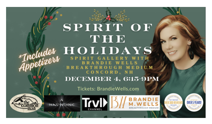 Join us for an enchanting evening with Brandie Wells, a renowned medium, at Dexter’s Inn, Sunapee, NH, on November 7th. Seating opens at 5:30 pm. Brandie will captivate you with her ability to connect with the spirit realm, delivering m …