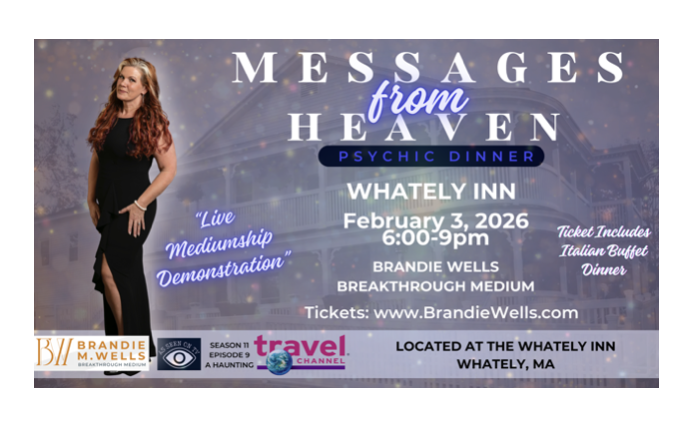 • Messages from Heaven with Brandie Wells at The Whately Inn, Whately, MA | Tuesday, Feb. 3, 2026, at 6:00 pm