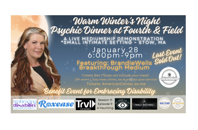 • Psychic Dinner and Spirit Gallery with Brandie Wells to Benefit Embracing Disabilities at Fourth & Field Restaurant | Wednesday, January 28, 2026 6pm