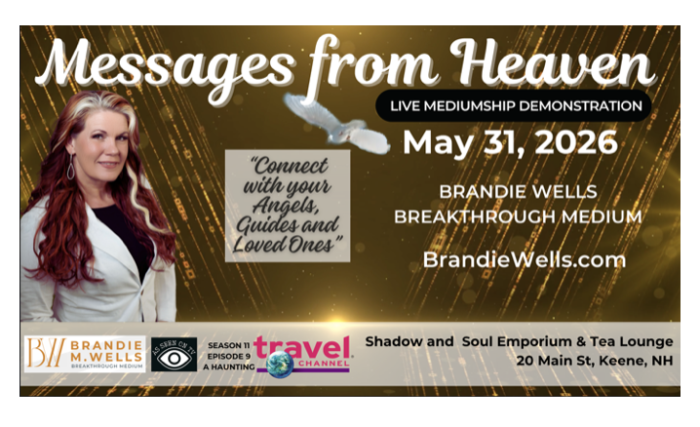 Messages From Heaven Psychic Dinner with Brandie Wells at Dexter’s Inn (Sunapee, NH) | Thursday, May 14, 2026, at 5:30 pm3 hours 30 minutes @ $49.00
