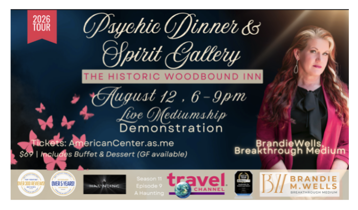 Psychic Dinner and Spirit Gallery with Brandie Wells at The Woodbound Inn (Rindge, NH) | Wednesday August 12, 2026, at 6:00 pm3 hours @ $69.00