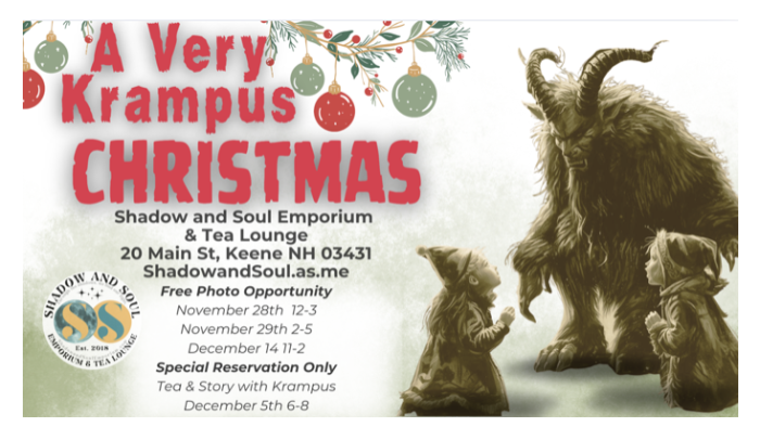 Special Reservation Story & Tea Time with Krampus! DEC. 5, 6PM ON Krampusnacht—“Krampus Night” – Reservation includes 3 tier tray with German Inspired selections (Buy Tea on arrival)2 hours @ $25.00