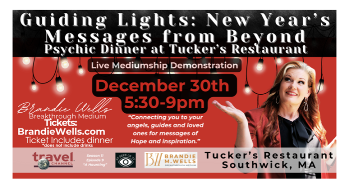 Guiding Lights: Psychic Dinner with Brandie Wells at Tucker’s Restaurant (Southwick, MA) | Tuesday, December 30, 2025, at 5:30 pm3 hours 30 minutes @ $69.00