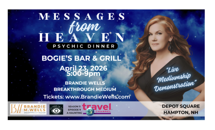 Messages from Heaven with Brandie Wells at Bogie’s Bar & Grill Hampton, NH ($69) Thursday, April 23, 2026, at 5:00 pm4 hours @ $69.00