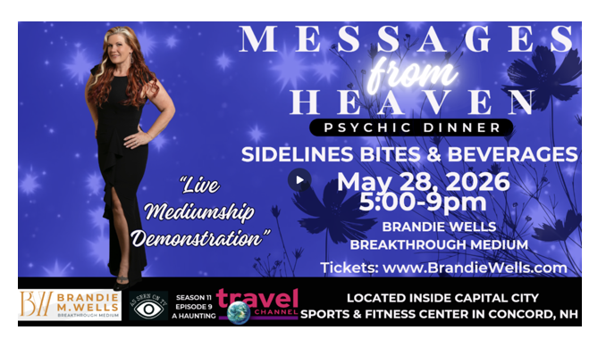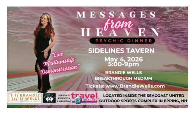 Messages from Heaven with Brandie Wells at Sidelines Located inside at Capital City Sports & Fitness Center Concord, NH ($69) Thursday, April 23, 2026, at 5:00 pm4 hours @ $69.00